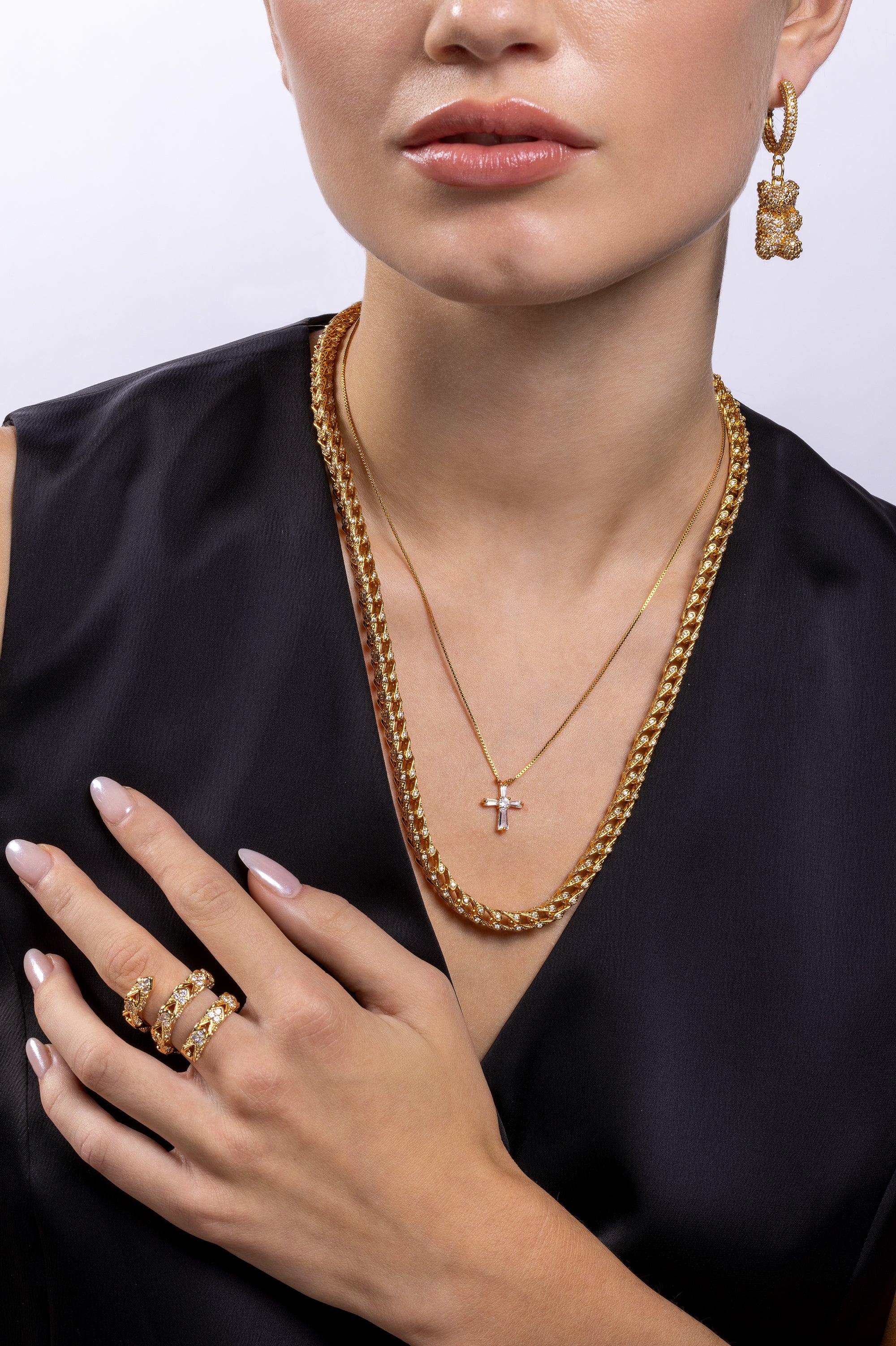 • Material: 18k gold-plated brass and cubic zirconia