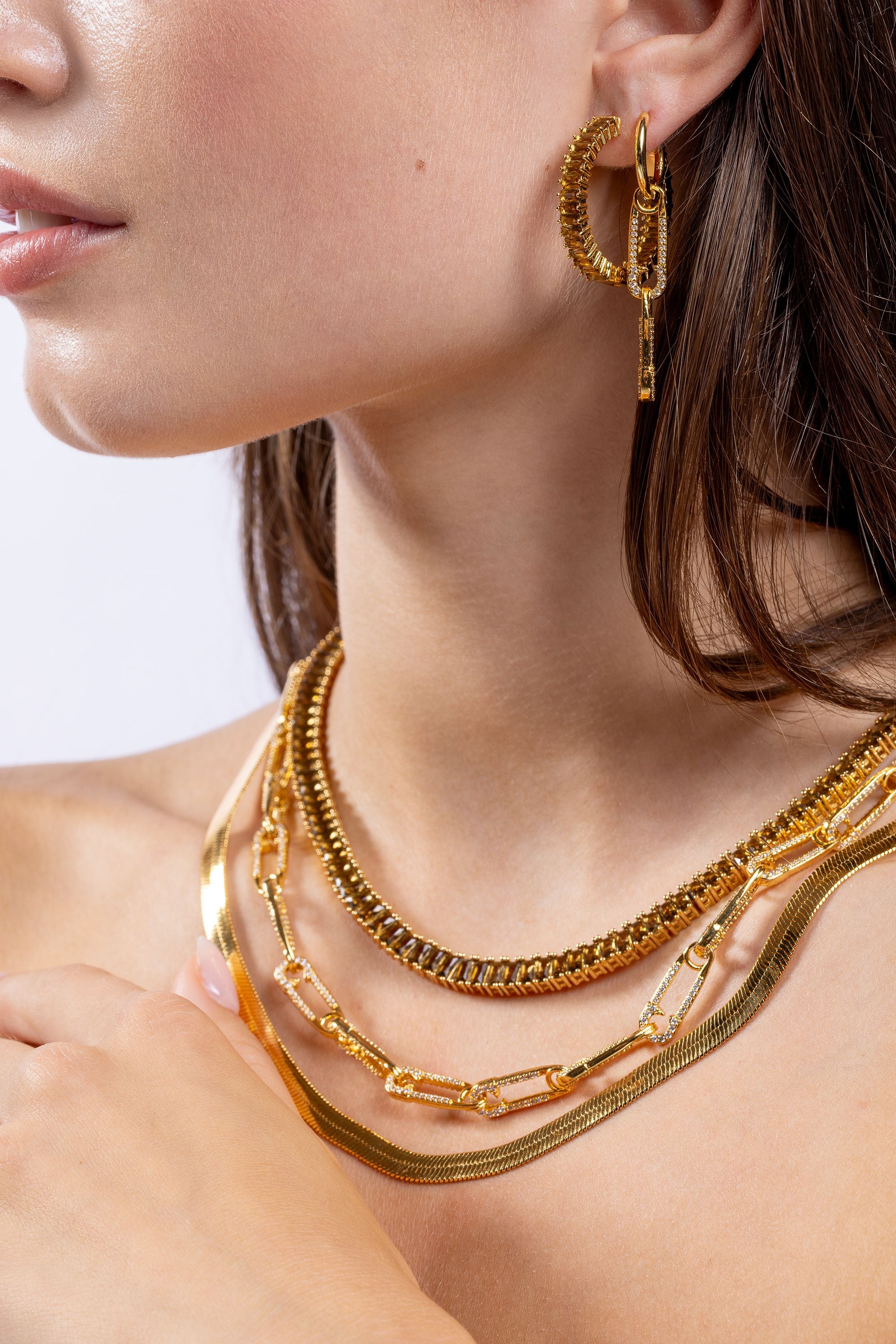 • Material: 18k gold-plated brass and cubic zirconia
