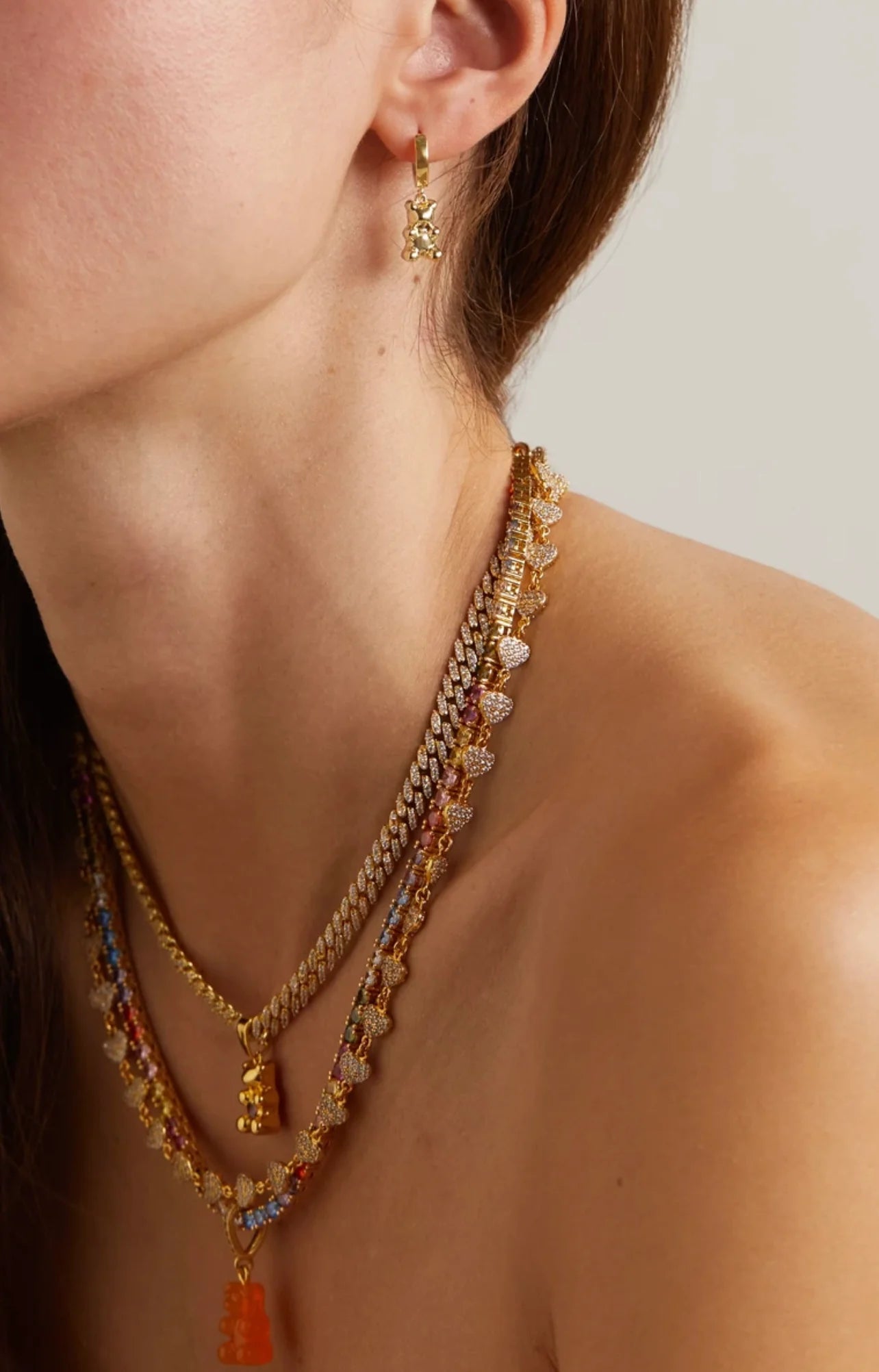 The Mini Nostalgia Bear Hoop brings a playful wink of childhood memories into a polished, modern silhouette. This charming mini hoop features a glossy bear charm that swings effortlessly with every move, striking the perfect balance between whimsy and sophistication.