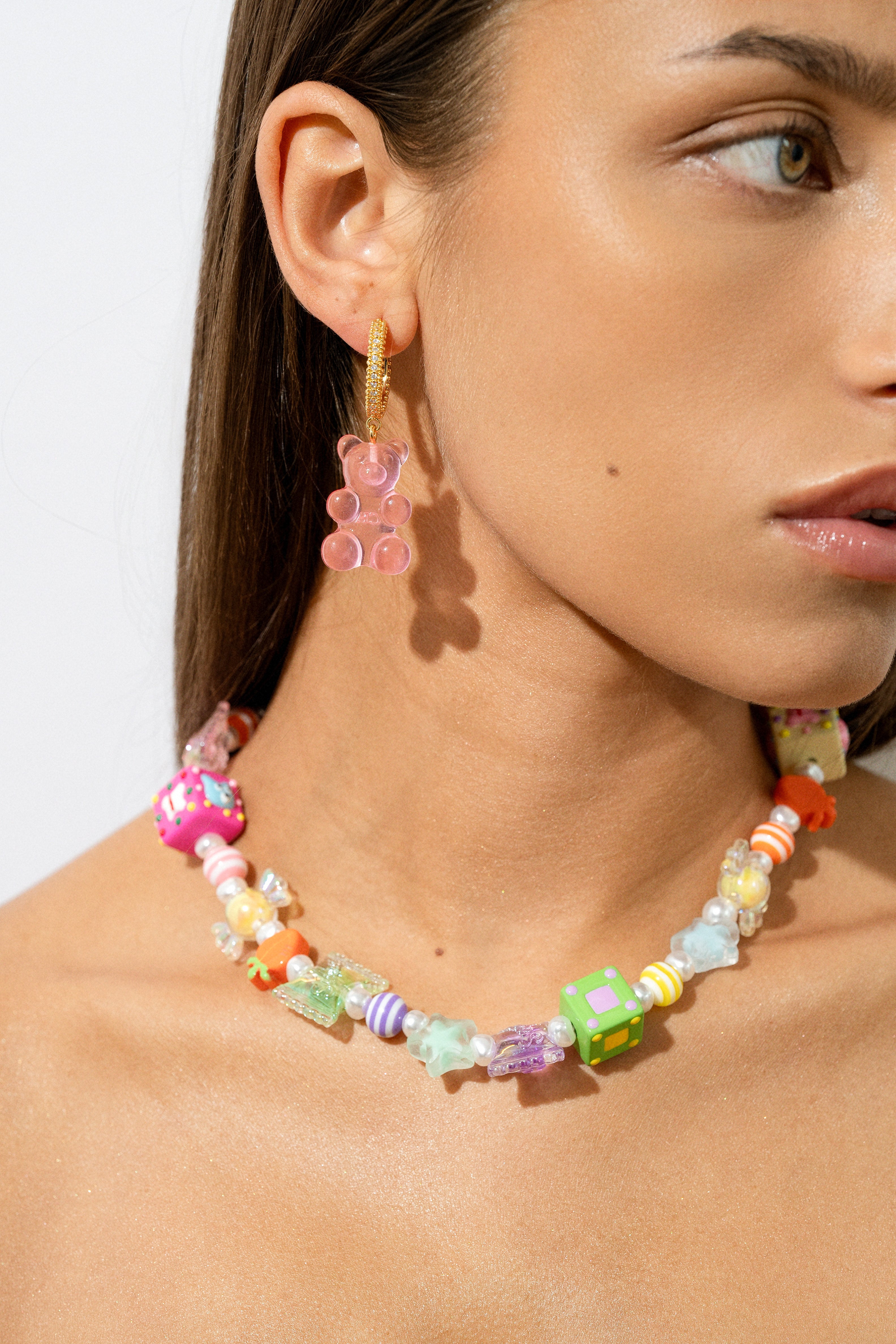 Available in vibrant shades of: jelly red, bubblegum, lime and azure. Collect them, layer them or stack them – our Nostalgia Bear styles are made to be mixed and matched with all of our Crystal Haze Jewelry chains and necklaces.