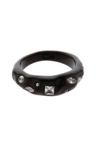 Cosmo Ring in Black brings late-night glamour with a playful cosmic twist. A glossy black resin band sets the stage for scattered cubic zirconia that sparkle like stars caught mid-orbit. Bold, smooth, and irresistibly chic, this ring is designed to stand out whether worn solo or stacked for extra impact.