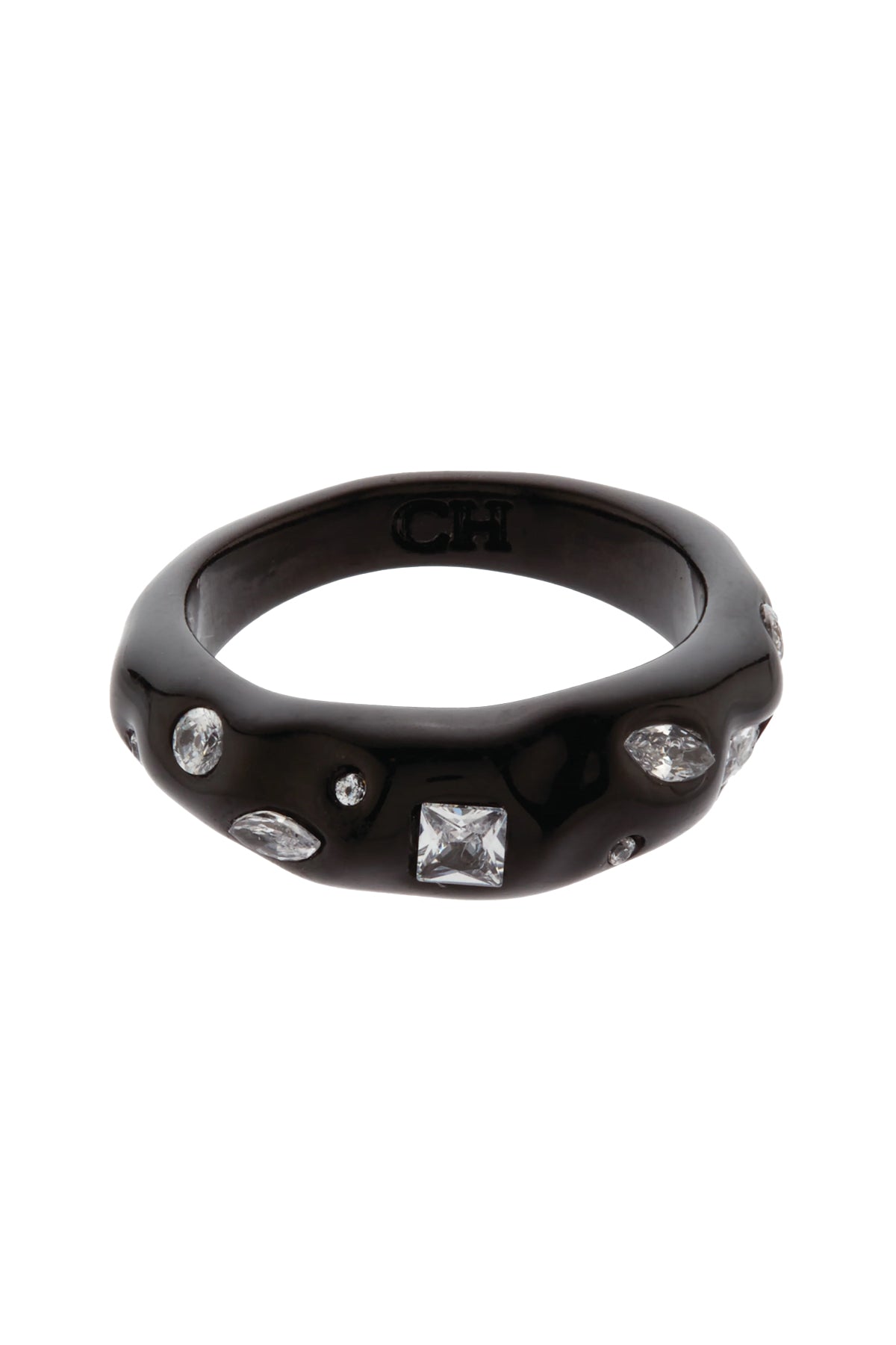 Crafted from polished resin and finished with brilliant cubic zirconia, the Cosmo Ring balances modern edge with high-shine luxury. Perfect for dressing up everyday looks or adding a little drama after dark.