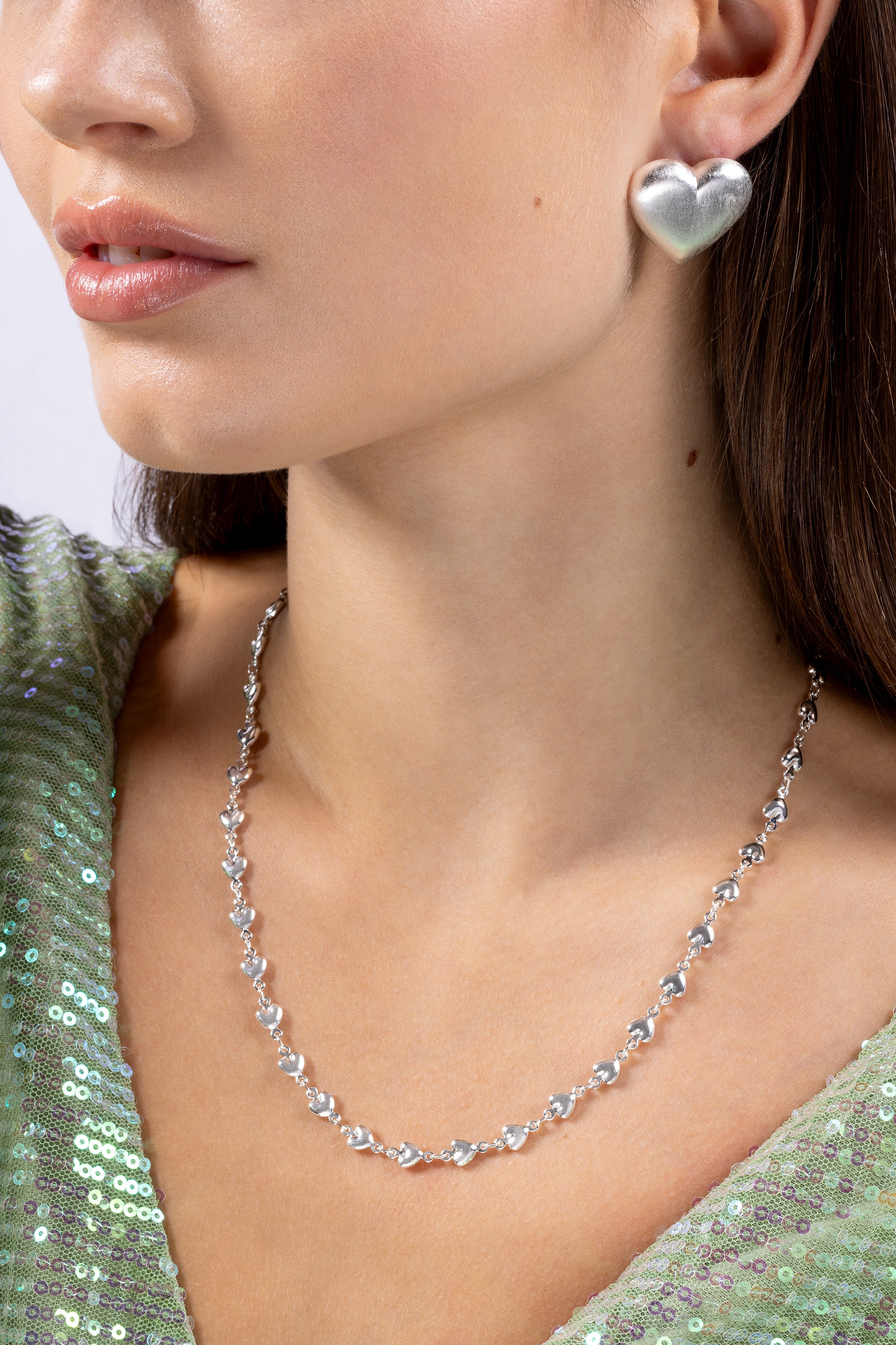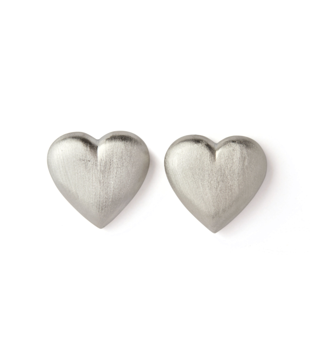 Chrome Heart Earrings capture modern romance with a cool, sculptural edge. The softly contoured heart silhouette feels bold yet minimal, finished with a smooth, brushed surface that reflects light in an understated, confident way. Playful in shape but refined in execution, these earrings add personality without ever trying too hard.