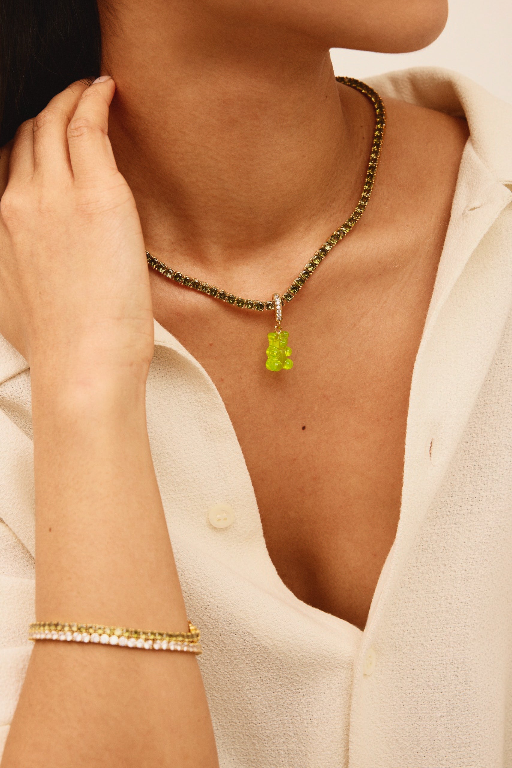 The Tennis collection is a modern take on the timeless tennis necklace style. We wanted to create a collection that captures the elegance and sophistication of the classic tennis necklace, but with a contemporary twist. The necklaces and bracelets are available in a range of different colors, allowing you to choose the perfect piece to match your personal style.Whether you're dressing up for a special occasion or adding a touch of glamour to your everyday look, the Tennis collection is the perfect choice. The delicate and sparkling design of the necklaces and bracelets will effortlessly elevate any outfit, making you feel confident and stylish.