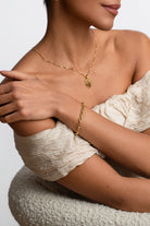 Chunky, stackable and perfect for layering, we recommend pairing this with the Mommo Bracelet for a collaboration of both statement and dainty gold bracelets.