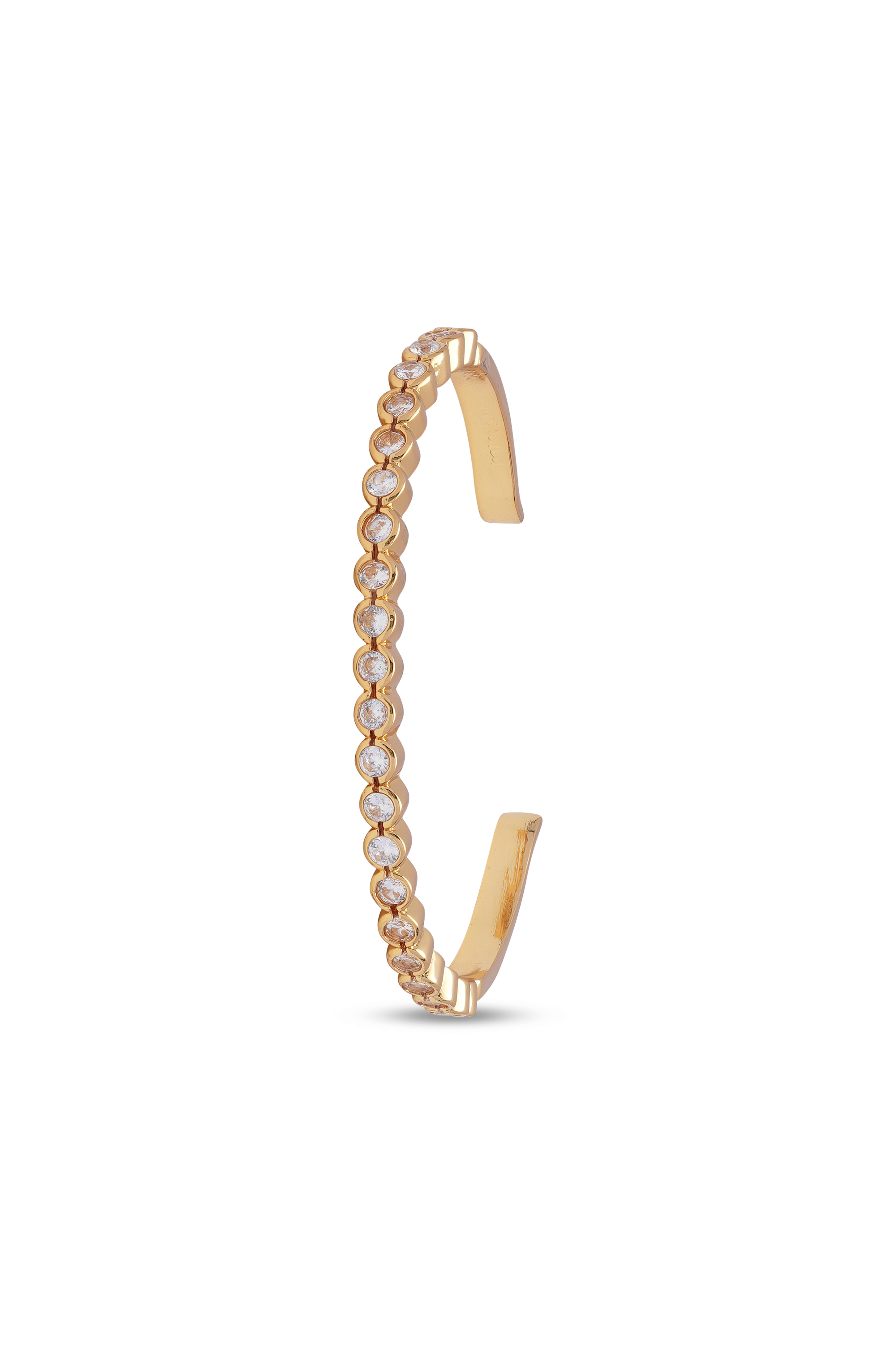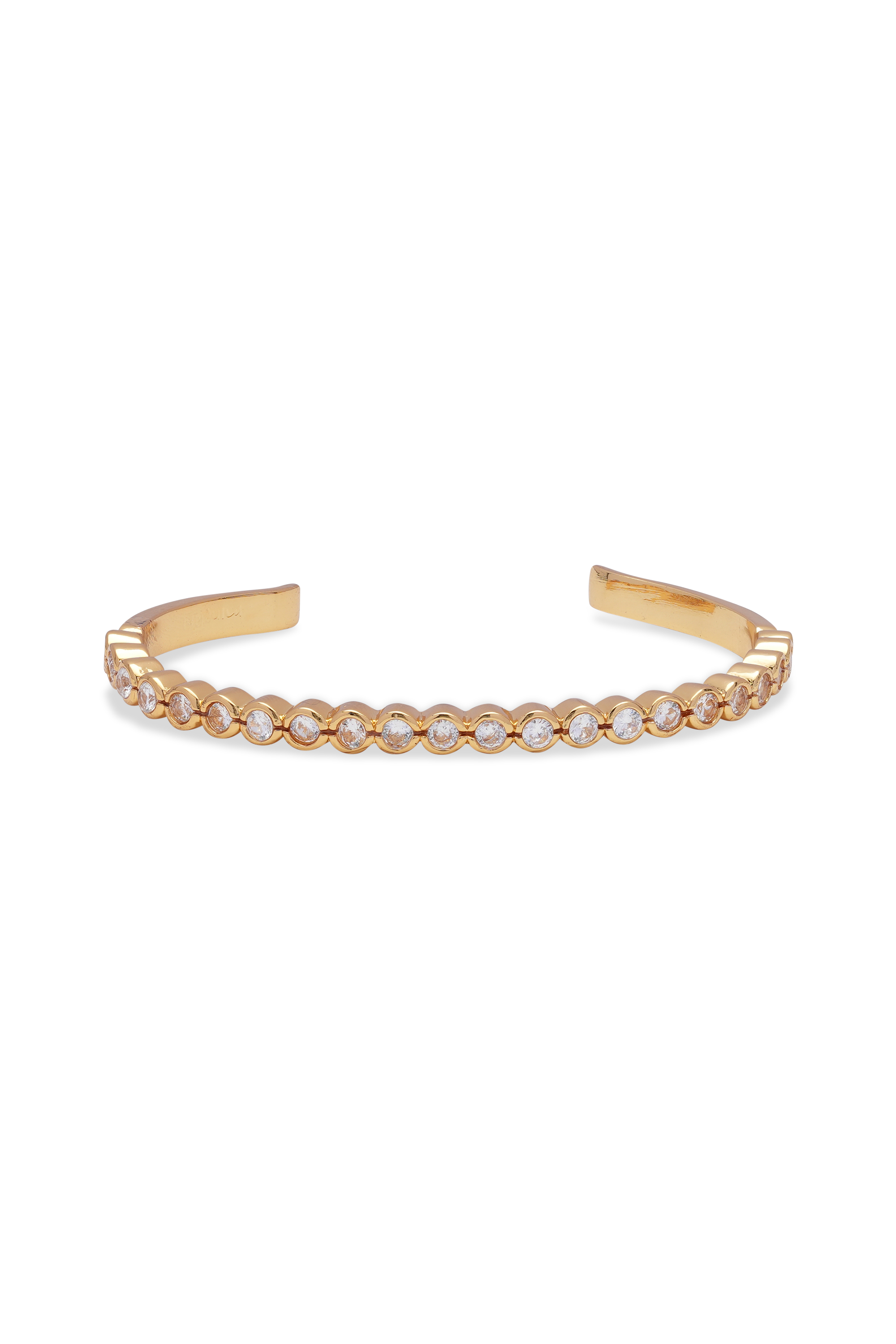 In true Crystal Haze fashion, the addition of dazzling cubic zirconia to the gold bangle creates a standout effect, elevating any outfit for catching the light whether during the day or dancefloor.