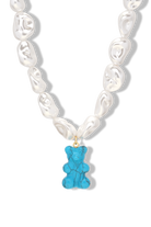 Inspired by unique and distinctive Keshi pearls, our Turquoise Mega Nostalgia Bear Necklace is the perfect accessory for your summer holidays. The organic shapes of the artificial pearl-like beads are reminiscent of the sea which marries perfectly with the turquoise hues of the blue bear, so make a statement while you’re lying in the sand. This can be purchased with or without the Nostalgia Bear, for a more classic, understated look and the Nostalgia Bear can also be purchased separately to add to your charms collection.