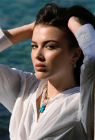 Made of 18k gold plated brass, artificial pearls and turquoise
