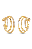 Four hoops in differing dimensions are joined together, giving the effect of a curated ear, but with no fuss. The variation of both sleek gold and pavé cubic zirconia also adds sparkle to the layered effect.
