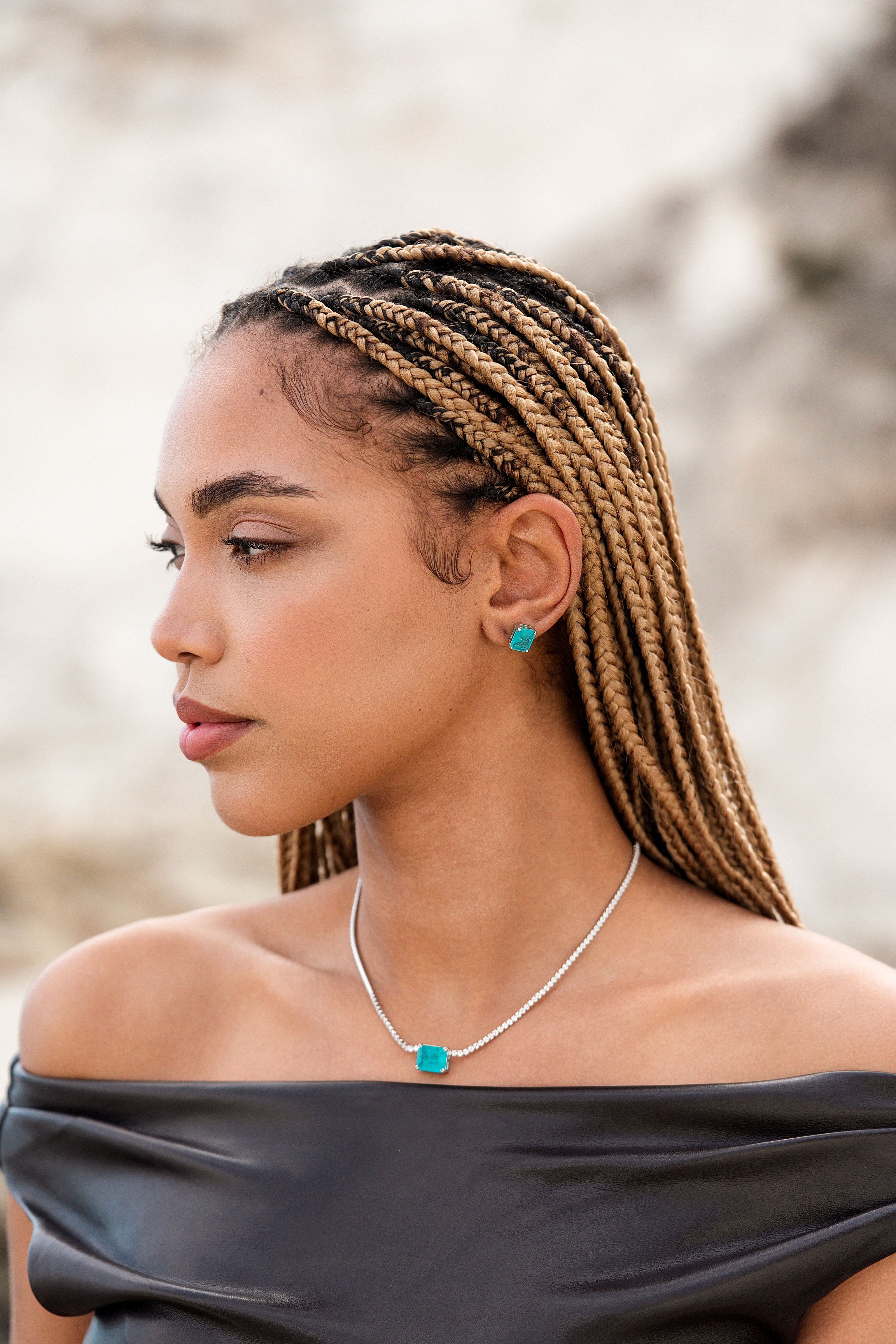 - Rhodium-plated 925 sterling silver and syntethic paraiba