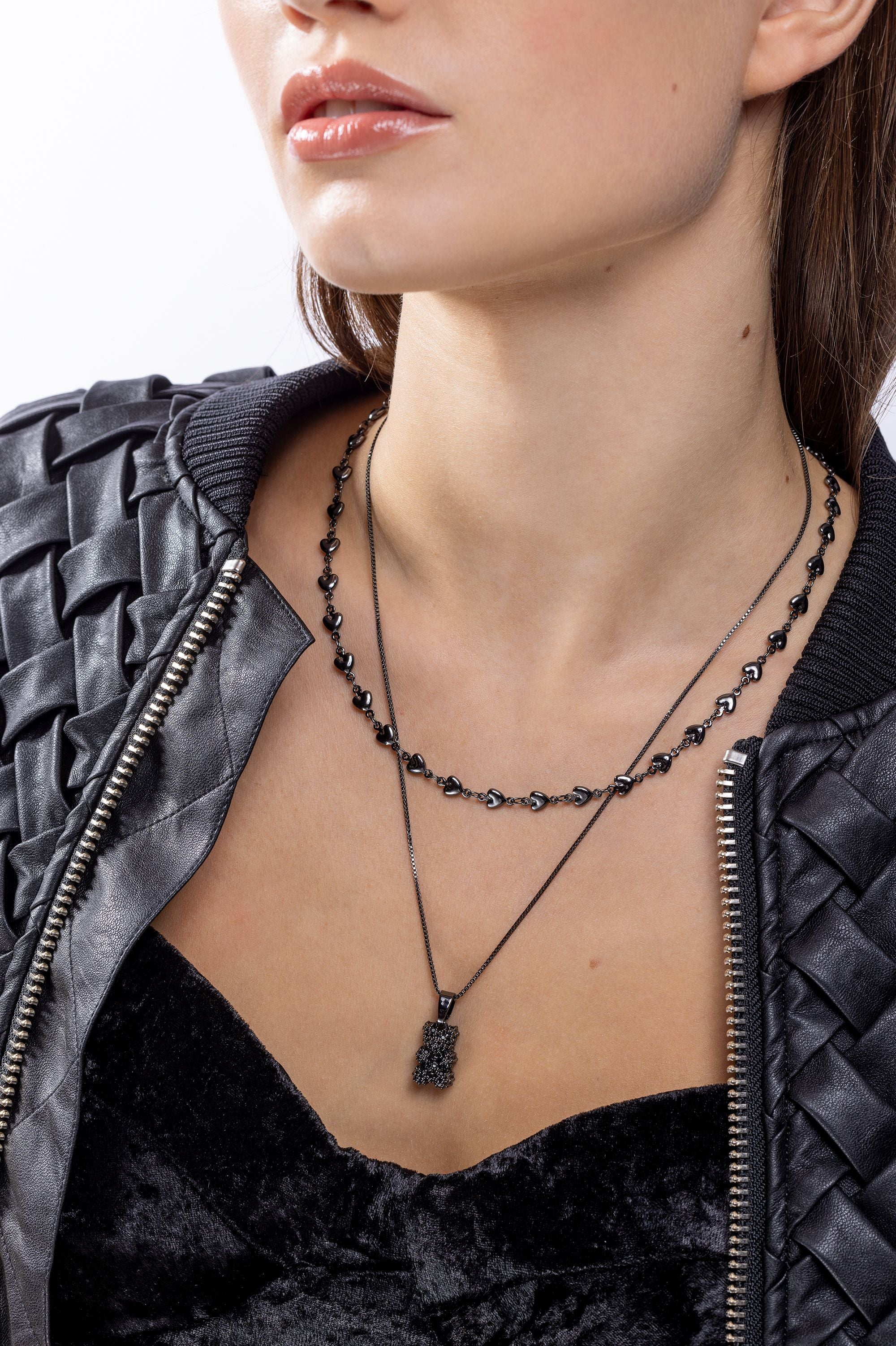 Black Hardware 컬렉션은 패션의 엣지있고 반항적인 측면을 포용하는 것에 관한 것입니다. 매끄럽고 어두운 미학을 갖춘 이 컬렉션은 대담한 표현을 하고 군중 속에서 눈에 띄기를 원하는 사람들에게 적합합니다. 베이스 메탈은 황동으로 제작되어 내구성과 견고함을 제공하며, 메탈릭 블랙 도금은 세련미와 신비로움을 더해줍니다. 개성 넘치는 귀걸이부터 두툼한 팔찌, 세련된 목걸이까지 Black Hardware 컬렉션은 개인 스타일에 맞는 다양한 옵션을 제공합니다. 미니멀하고 절제된 디자인을 선호하든, 좀 더 드라마틱하고 시선을 사로잡는 디자인을 선호하든 상관없습니다.