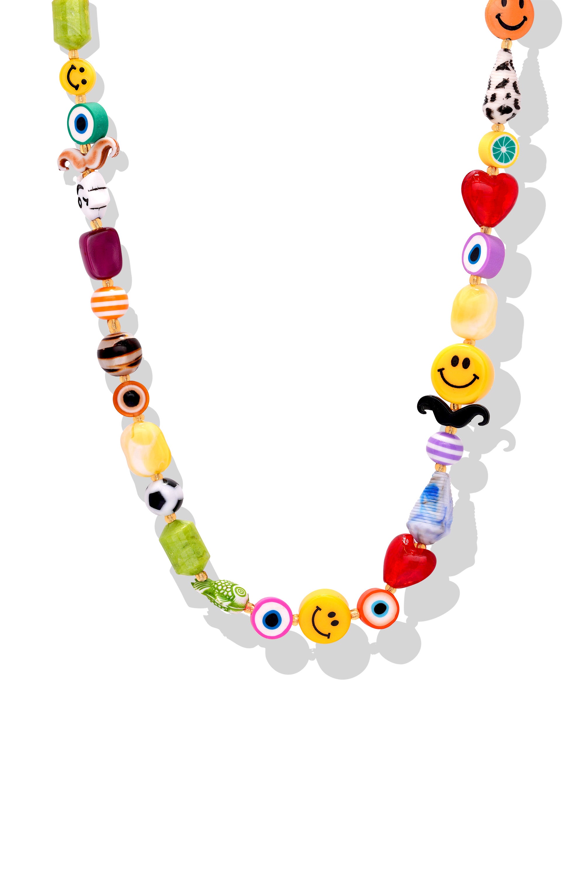 Brighten your day with the Happy Mood Only necklace! This playful piece is bursting with personality, featuring a delightful mix of colorful beads, quirky charms, and smiley faces that radiate joy. Whether you're vibing with the funky mustache, the cheeky evil eyes, or the bold hearts, this necklace is a celebration of positivity and individuality.