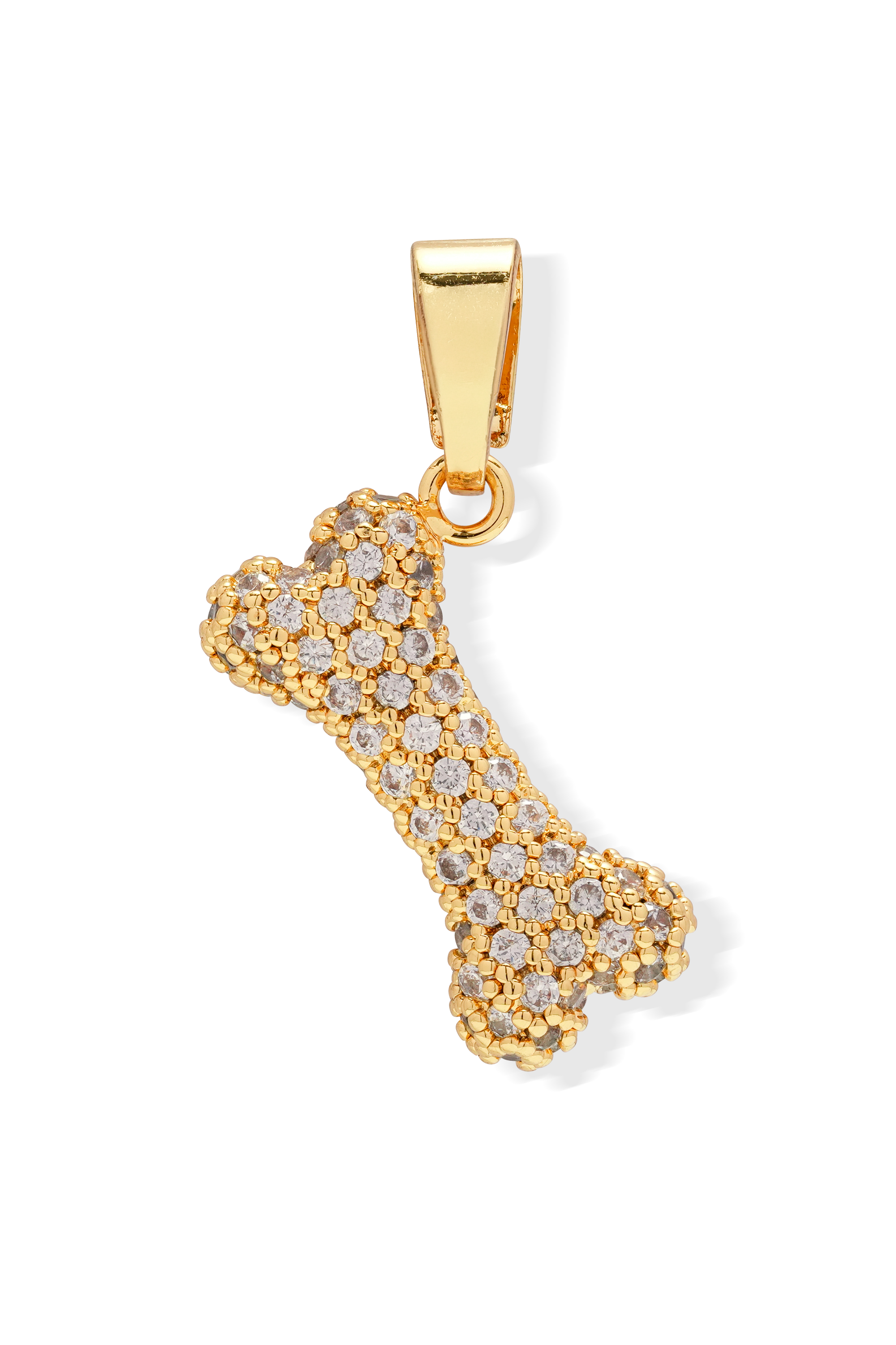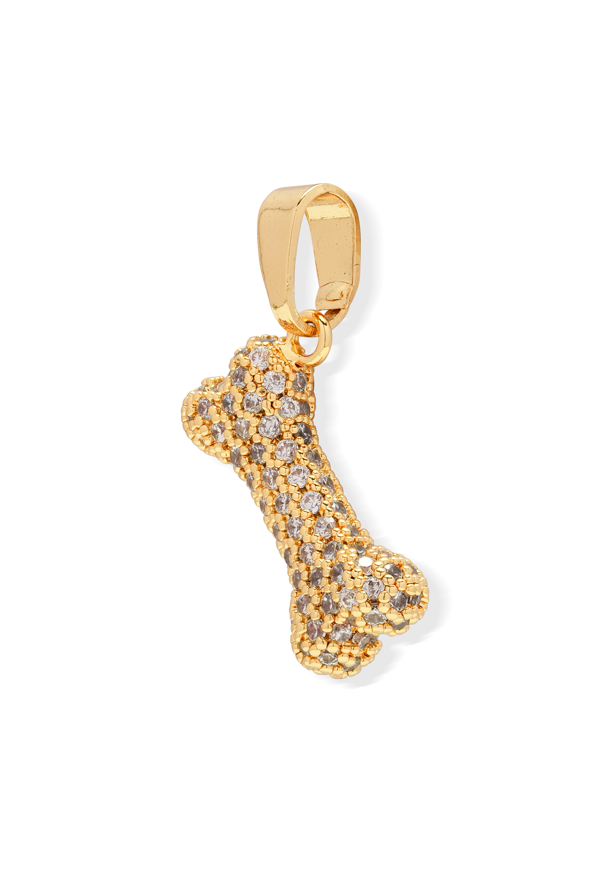 A gold pendant in a bone motif is finished with sparkling pavé cubic zirconia – perfect for someone who loves bling and four legged friends 🐾