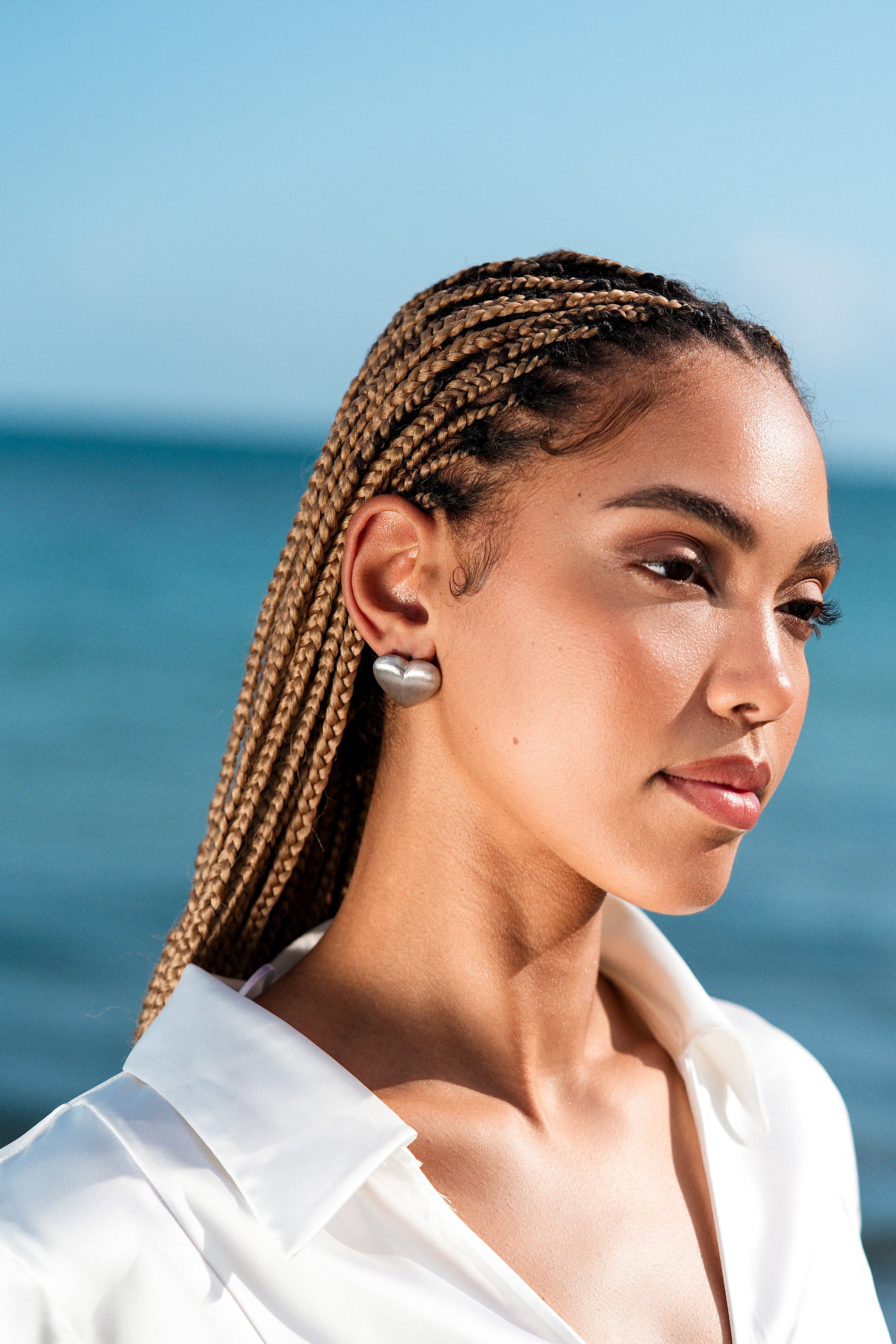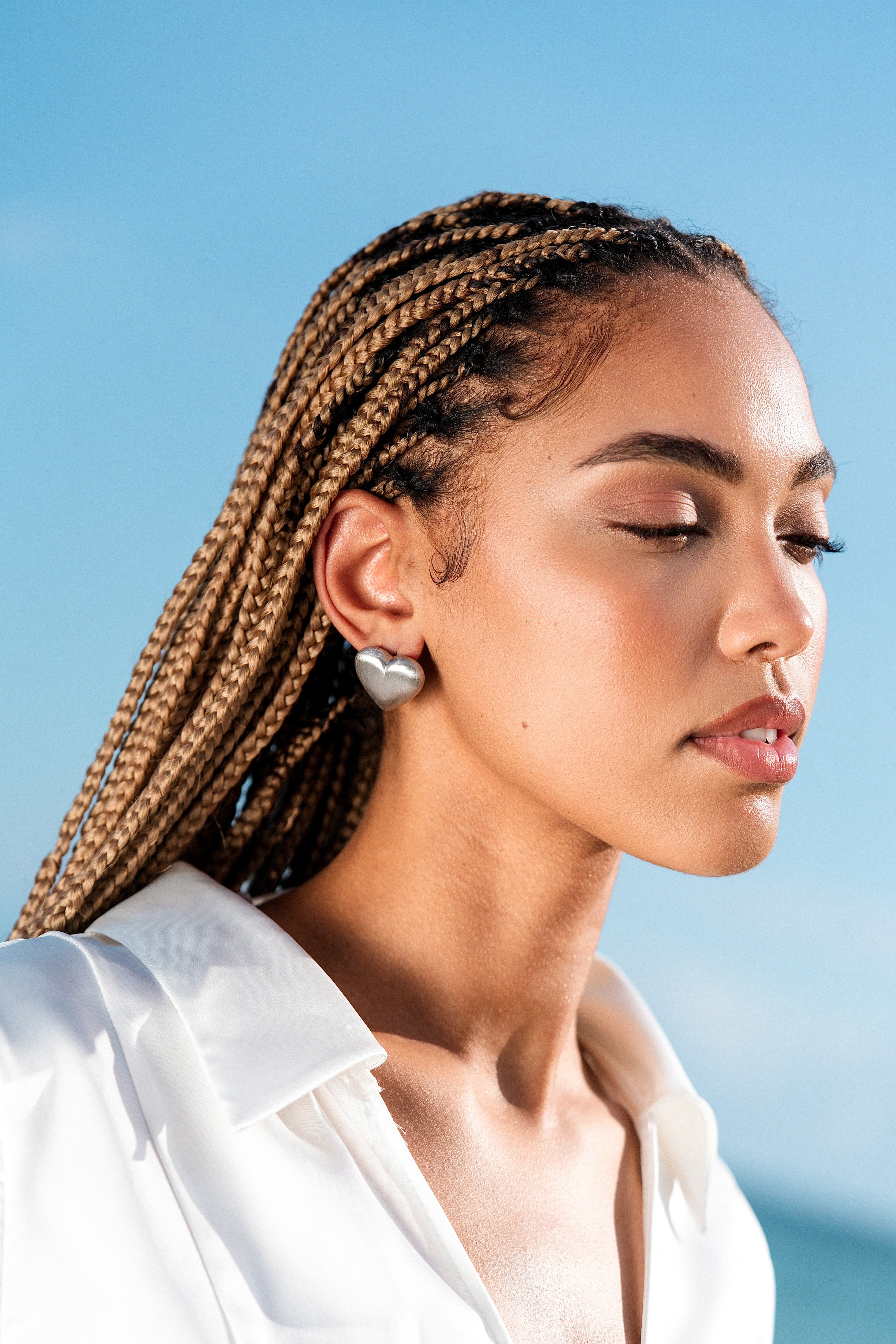 Chrome Heart Earrings capture modern romance with a cool, sculptural edge. The softly contoured heart silhouette feels bold yet minimal, finished with a smooth, brushed surface that reflects light in an understated, confident way. Playful in shape but refined in execution, these earrings add personality without ever trying too hard.