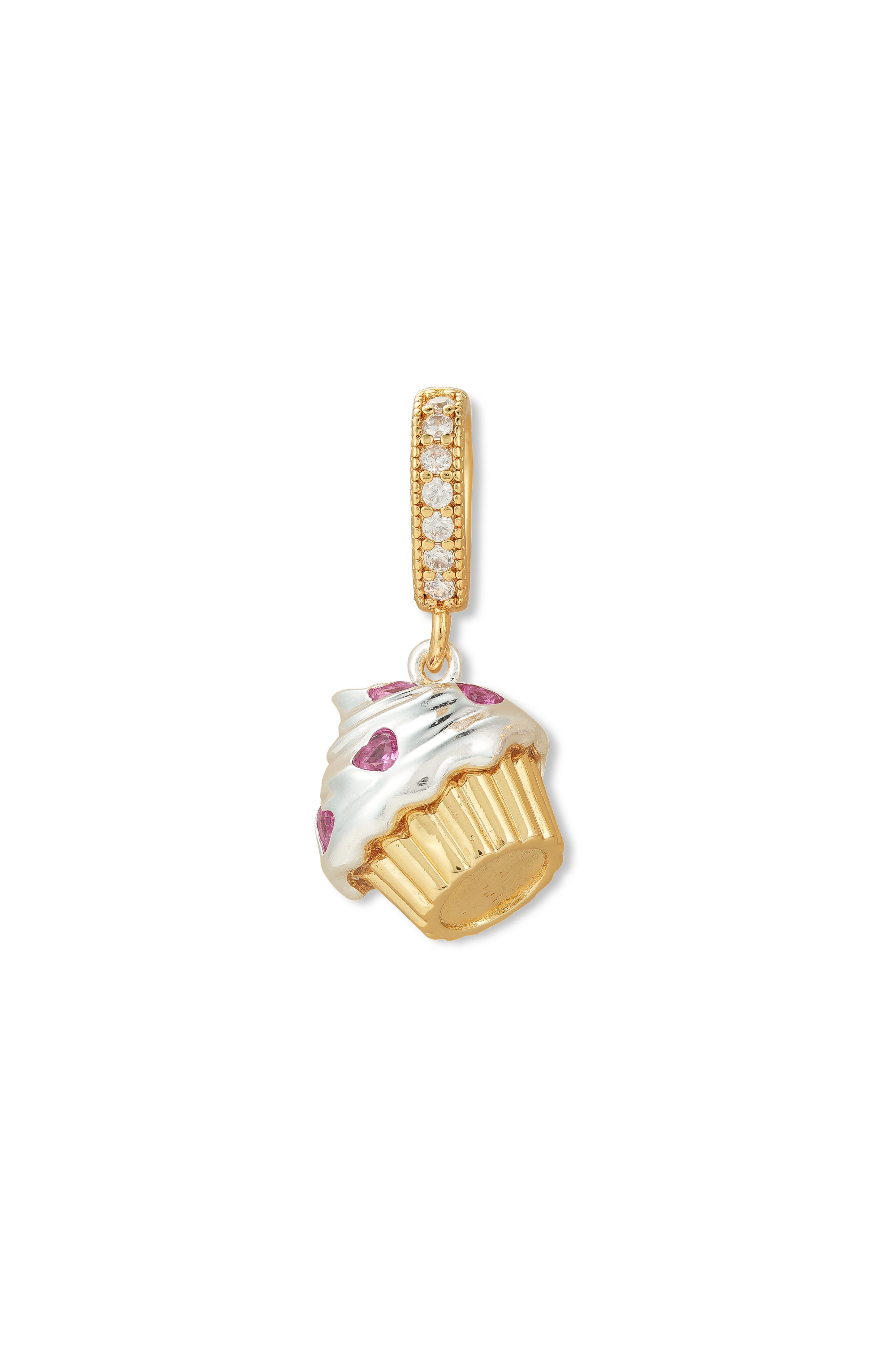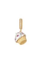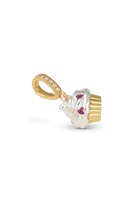 Delightfully sweet with a touch of sparkle, the Frosted Dream Pendant transforms a beloved dessert into a charming piece of wearable art. Designed to resemble a frosted cupcake, this pendant features a beautifully detailed gold base topped with glossy white enamel “frosting” and accented with shimmering pink stones for a playful pop of color.
