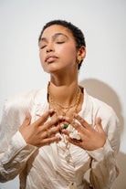 Understated yet striking, the Green Quartz Baguette Necklace is a refined piece designed to elevate everyday elegance. At its center sits a beautifully cut rectangular green quartz stone, showcasing rich, natural tones and subtle variations that make each piece unique.