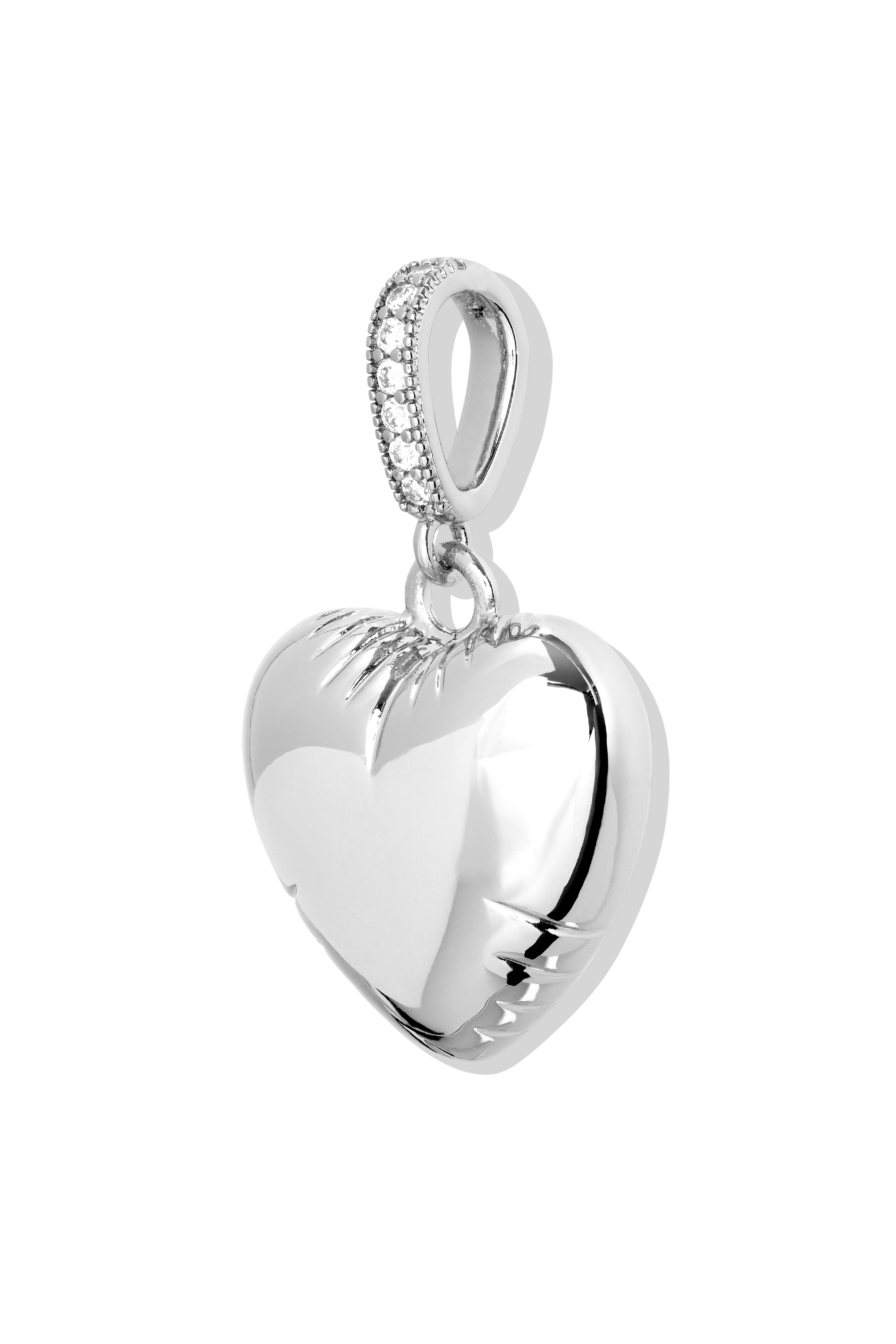 The Balloon Heart Pendant with Pavé Connector in Silver delivers a playful touch of luxury with its glossy, puffed-heart silhouette and radiant sparkle. Polished to a mirror shine, the heart charm feels light, dreamy, and full of personality, while the pavé connector adds a refined hit of brilliance that catches every bit of light.